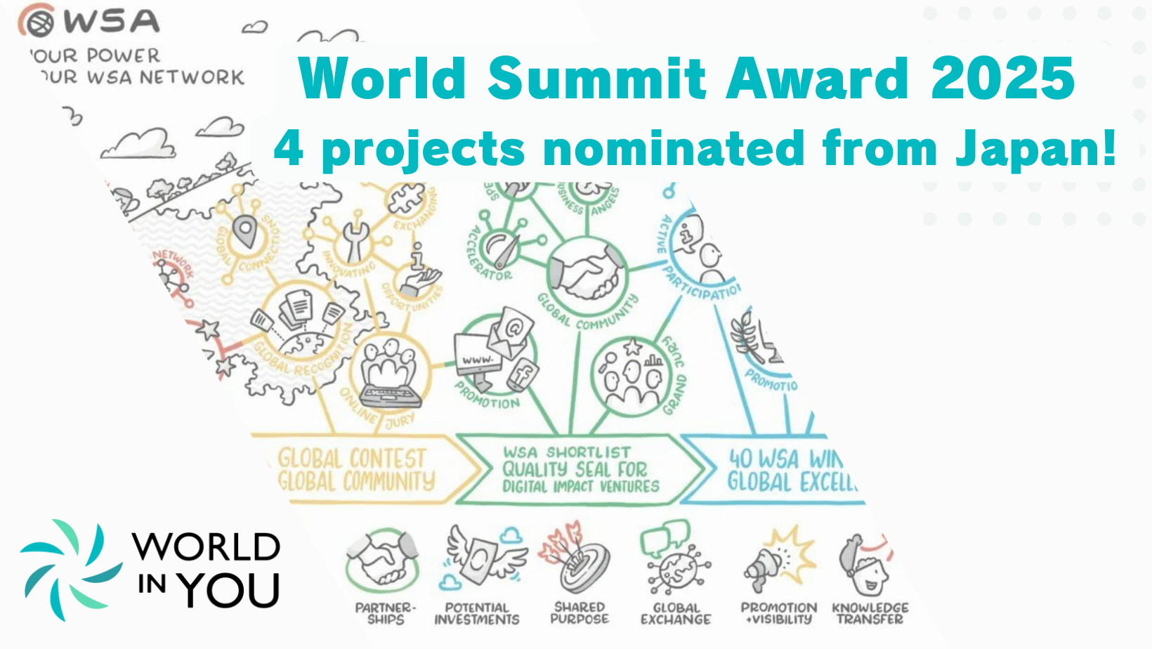 World in You, Japan Country Expert of the World Summit Award (WSA), is thrilled to announce the nomination of four pioneering initiatives from Japan for the World Summit Award 2025. These initiatives leverage digital technology to address pressing social issues and contribute to positive global change.
